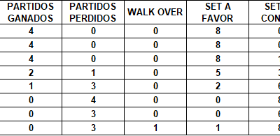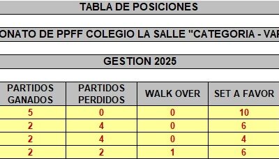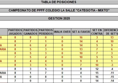 Tabla de Posiciones RAQUETBOL hasta 25/10